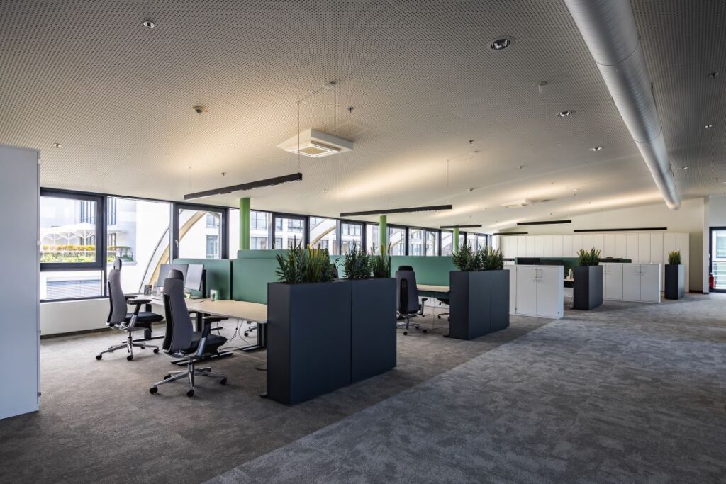 In der Derendorfer Allee 10 in Düsseldorf realisierten wir den Ausbau des „Loft 12“ auf rund 1500m². Das Projekt umfasste neben den Demontagearbeiten einen hochwertigen Büroflächenausbau gepaart mit Systemglastrennwänden und Akustikdecken – umgesetzt in rund einem halben Jahr bei einem Umsatzvolumen von ca. 1.4 Mio. Euro. Dabei entstand eine moderne Arbeitswelt mit architektonischem Charakter.